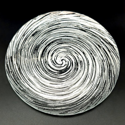 Popel Gilded Glass Dinner Plate SilverThe VOLUTE glass dinner plate is a work of art for your table. The captivating vortex pattern enhanced with true color metal gilding finish creates a sense of movement and elegance. Distressed finish conveys a contrast of metal and glass and an opalescent look with a rich iridescence. Whether entertaining guests or enjMercer41