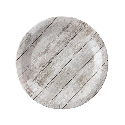 Party Supplies Dinner Plate for 8 GuestsAdd rustic sophistication to your party's tableware with these dinner plates featuring a shiplap design. These unusual dinner plates will nicely complement a rustic and chic party theme indoors or outdoors. Sturdy and with ample surface area for hearty portions these dinner plates will be appreciated by guests. Paper.Oriental Trading Company