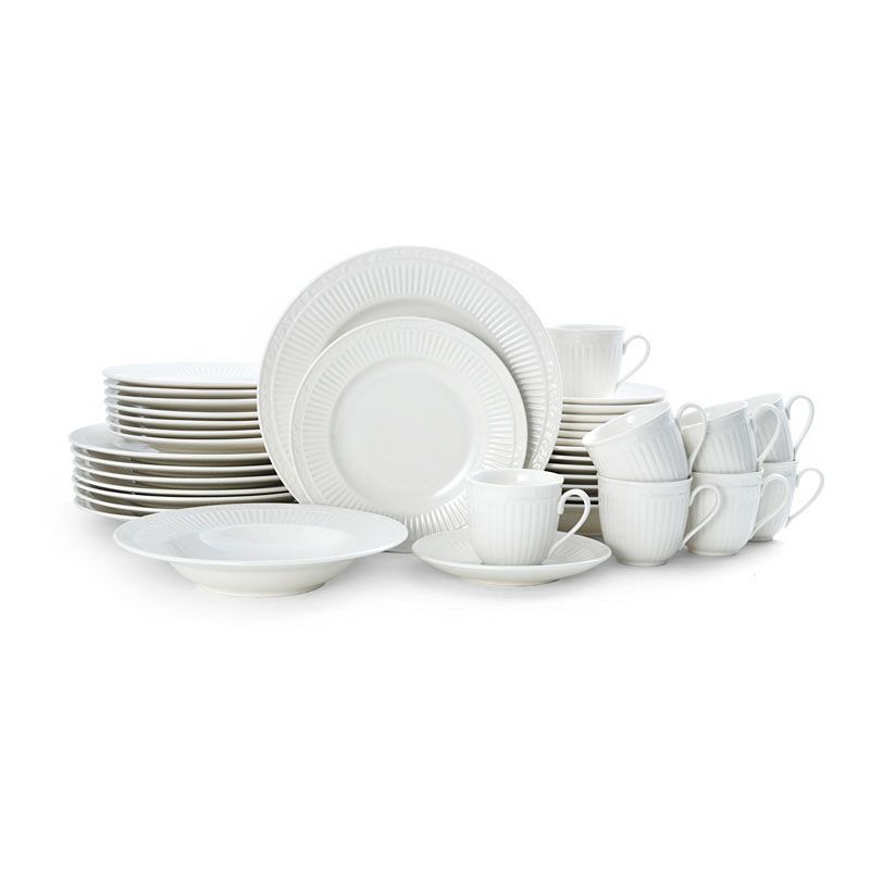 Mikasa Italian Countryside 40-Piece Dinnerware Set, WhiteThe fluted bands and column-like detailing of this Mikasa Italian Countryside 40-Piece Dinnerware Set delivers classical Italian architecture. FEATURES Italian Countryside is a classic casual pattern that is perfect for everyday entertaining with a timeless white embossed design 40-piece dinnerware set includes eight eMikasa