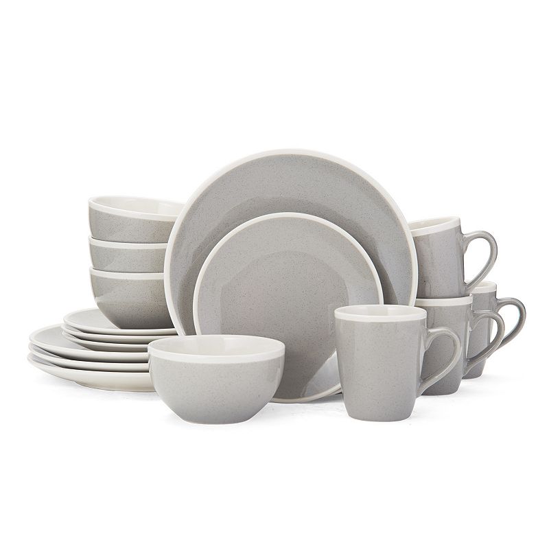 Gourmet Basics by Mikasa 16-piece Melanie Gray Dinnerware Set, GreySet a stunning table for any occasion with this Gourmet Basics by Mikasa Melanie Gray dinnerware set.PRODUCT FEATURES High-quality stoneware construction Captivating speckled design with contrasting white rims WHAT'S INCLUDED Four 10.5-in. dinner plates Four 8-in. salad plates Four 6-in. bowls Four 14-oz. mugs StonewarMikasa