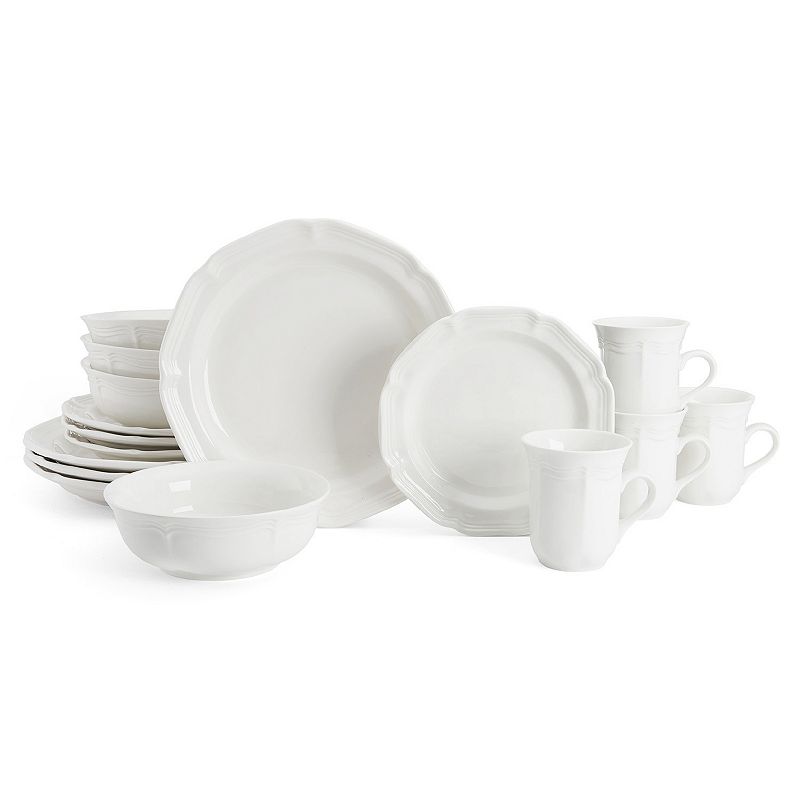 Mikasa French Countryside 16-pc. Dinnerware Set, WhiteBring a touch of the French countryside to the table with this elegant dinnerware set by Mikasa.PRODUCT FEATURES Gently scalloped edges and curves Rich cream color WHAT'S INCLUDED Four 10.75-in. dinner plates Four 8.25-in. salad plates Four 7-in. cereal bowls Four 11-oz. mugs Porcelain Dishwasher & microwave safe ModelMikasa