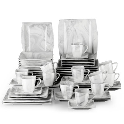 Hafza Blance 60 Piece Dinnerware Set, Service for 12The porcelain dinnerware set is elegant and practical, offering tasteful and high-quality porcelain table services in a pure style that goes with any ambiance. Ebern Designs Color: GreyEbern Designs