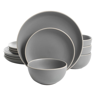 Rodolfa 12 Piece Dinnerware Set - Service for 4WHATS IN THE BOX: Service for 4 that includes 4 of each of the following: 10.5 Dinner Plates, 8 Dessert Plates, 6 (26.5 OZ) Bowls in red Hokku Designs Color: GrayHokku Designs