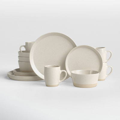 Roseanna 16 Piece Dinnerware Set, Service for 4Stock your cupboards with this 16-piece set of simply-chic dinnerware, including service for four! Including four dinner plates, four salad plates, four cereal bowls, and four mugs, each piece in this set features a modern, minimalist design. Crafted of premium stoneware in a cream finish, this set is chip-resistant anBirch Lane