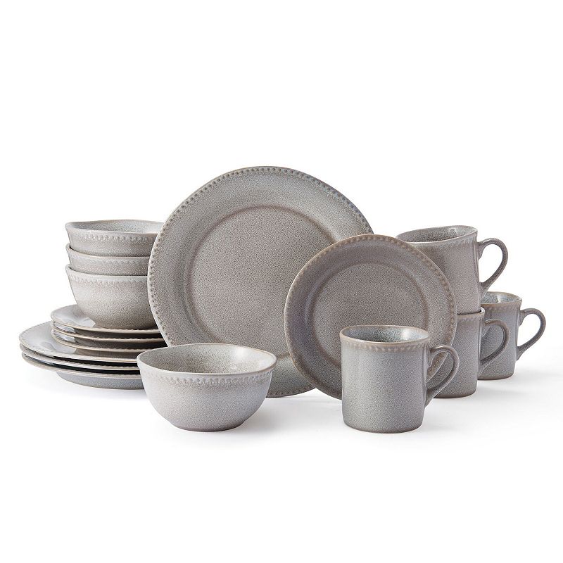 Mikasa Ellie Gray 16-pc. Dinnerware SetEasily create a tablescape suitable for entertaining or family meals with this Mikasa Ellie dinnerware. Durable stoneware construction Neutral hue complements any dining decorWHAT'S INCLUDED Four 11-in. dinner plates, four 8-in. salad plated, four 23-oz. bowls & four 15.5-oz. mugs Ceramic Microwave & dishwasher safe MoMikasa