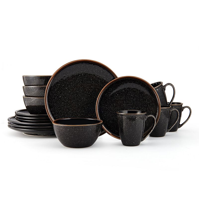 Sango Nova 16-pc. Dinnerware Set, BlackInspired by the artisan pottery of Central Java, Indonesia, this Sango Nova dinnerware is handcrafted so that no two pieces are exactly alike. Guests will be delighted by the simple construction and the use of rich, earthy shades of color progressing from dark edges to light centers. The lustrous glaze harmonizes withSango
