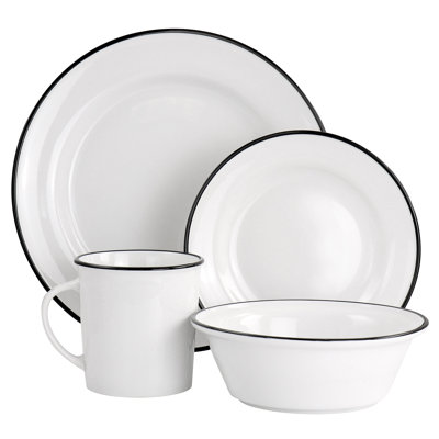 16 Piece Dinnerware Set, Service for 4Bring a clean modern look with a classic finish to your table with this black rimmed 16 piece dinnerware set by Martha Stewart. The Martha Stewart collection is perfect for formal or relaxed settings; put your unique style on display by mixing and matching this collection of serveware and dinnerware to create tabletopsMartha Stewart