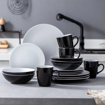 16 Pc Dinnerware Dish Set For 4 Person | Mugs, Salad And Dinner Plates And Bowls Sets, High Quality Dishes With Highly Chip And Crack Resistant, DishwThe attractive 16 piece Dinnerware set has everything you need to go from everyday meals to special occasions. This dinner set can serve up to 4 people. The classic matte black colored modern stylish design can provide a wonderful setting for any occasion. This dish set is designed with a stackable feature that allowsLatitude Run