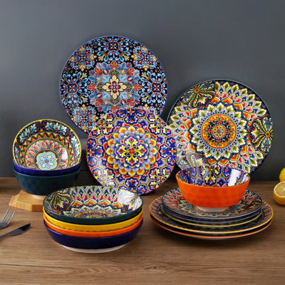 Cenka 16 Piece Porcelain China Dinnerware Set - Service for 4The Bohemian series aims to capture a timeless beauty that transcends fleeting trends. Its art and Bohemian charm are meant to be cherished across generations, symbolizing freedom, love, and self-expression. Each meal on Bohemian tableware carries a touch of Bohemian spirit, spreading joy and inspiration. Every piece bBungalow Rose