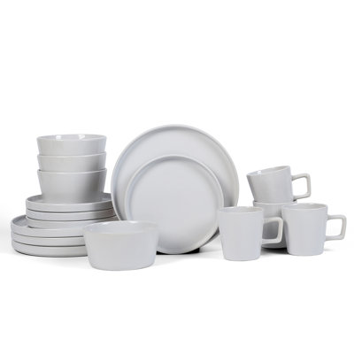 Celina 16-Piece Dinnerware Set StonewareMake a loud statement with your dishes. The Stone Lain 16 Piece Stoneware Round Dinnerware set in glossy white is unforgettable. The perfect balance between trendy cool and modern classicism, these round plates, bowls and cups turn every table into a hip party. It includes 4 large round 10.25 dinner plates, 4 round 7.5Stone Lain