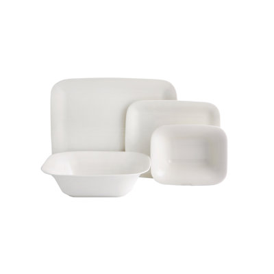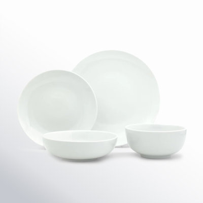 Essential 16 Piece Dinnerware SetGraceful, classic, casually refined: these are the defining elements of white essential. White porcelain doesnt have to lack style and finesse, especially in dishes brought to you by Euro Ceramica, the company known for color and laying a joyful dinner table. The distinct coupe and friendly double bowl configuration ofEuro Ceramica