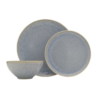 Barrett 12-Piece Stoneware Dinnerware Set, Service for 4This 12-Piece Dinnerware Set by Mikasa adds a splash of color to your tabletop with light blue, coupe shaped pieces. Made from high-quality stoneware for long-lasting beauty and durability, this set features a reactive glaze finish that gives each piece a distinctly unique look, adding an intriguing design element to yMikasa