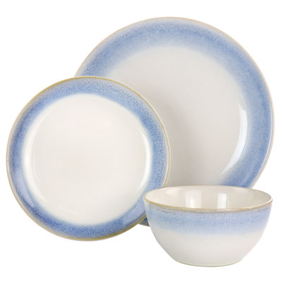 12 Piece Dinnerware Set, Service for 4Dress up your table with this reactive glaze stoneware dinnerware set by Martha Stewart. Formal or relaxed, your table setting sets the tone for your entire occasion. Put your unique style on display with this set, designed with a reactive glaze-colored rim that will showcase your recipes and make everyday dining moreMartha Stewart