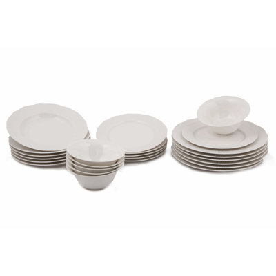 Adleigh 24 Piece Dinnerware Set, Service for 6Experience Elegance and Sophistication with our 24-Piece Porcelain Dinner Set Transform your dining experience with our exquisite 24-piece porcelain dinner set. Crafted with utmost precision and attention to detail, this dinner set is designed to add a touch of elegance and sophistication to your table. Unparalleled QuEast Urban Home