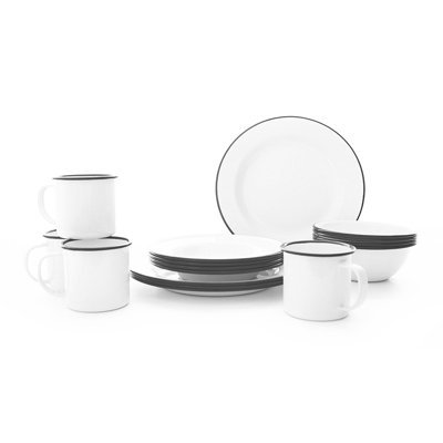 Crow Canyon Enamelware Vintage 16 Piece Dinnerware Set, Service for 4Crow Canyon classic enamelware is lightweight, shatterproof, and dishwasher safe which makes it perfect for entertaining, camping, and kids. This enamelware is a stylish and worry-free alternative to paper, porcelain, and plastic. Crow Canyon Home Color: GrayCrow Canyon Home