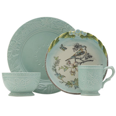 English Garden 16-Piece Stoneware Dinnerware Set, Service for 4English Garden 16 Piece Place Setting by Fitz and Floyd echoes the renewal of spring and old world romance, inspired by rose gardens and song birds in vintage styled cages. Set includes debossed flower accents and accent plates with blush tones of pink gracefully balanced against a sky of serenity blue. 16-piece set, sFitz and Floyd