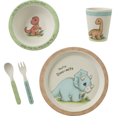 Precious Moments Porcelain China Dinnerware SetLearning to eat like a big kid is dino-mite. Make mealtime a Jurassic adventure for a little one learning to navigate a new world of independent eating. This 5 piece set includes a plate, bowl, cup, fork, and spoon. Adorable dinosaurs and sweet sayings adorn this durable dinnerware making mealtime fun for them and worrPrecious Moments