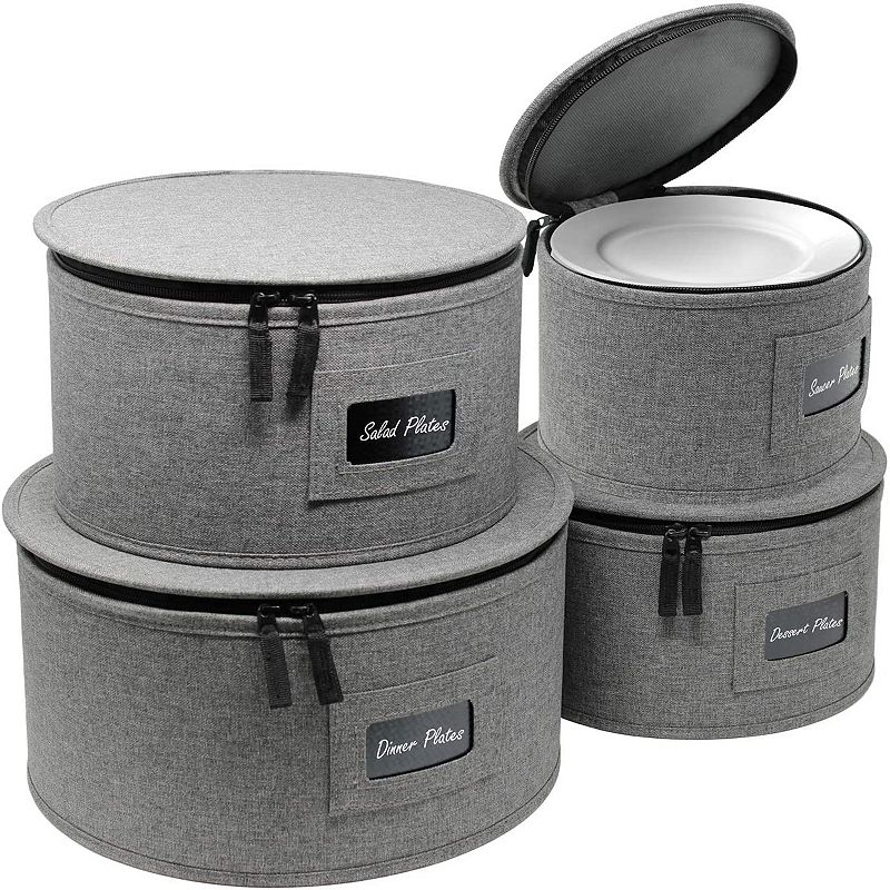 • Sorbus Set of 4 Dinnerware Storage Bins, GreyKeeps your plates in mint condition and ready to shine for special occasions with this 4-piece storage holder set. Keeps your plates in mint condition and ready to shine for special occasions with this 4-piece storage holder set. 4-piece set Plate cases include felt protectors to prevent each plate from cracks and scra