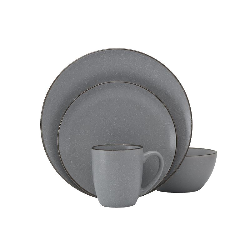 Gourmet Basics Juliana Gray Speckling 16-pc. Dinnerware Set, GreyThis Gourmet Basics dinnerware set is an elegant choice for any hosting occasion.PRODUCT FEATURES Speckled gray design with metallic rim Durable stoneware construction ensures lasting use WHAT'S INCLUDED Four 10.5-in. dinner plates Four 8.25-in. salad plates Four 6-in. soup cereal bowls Four 13-oz. mugs Stoneware DishwGourmet Basics