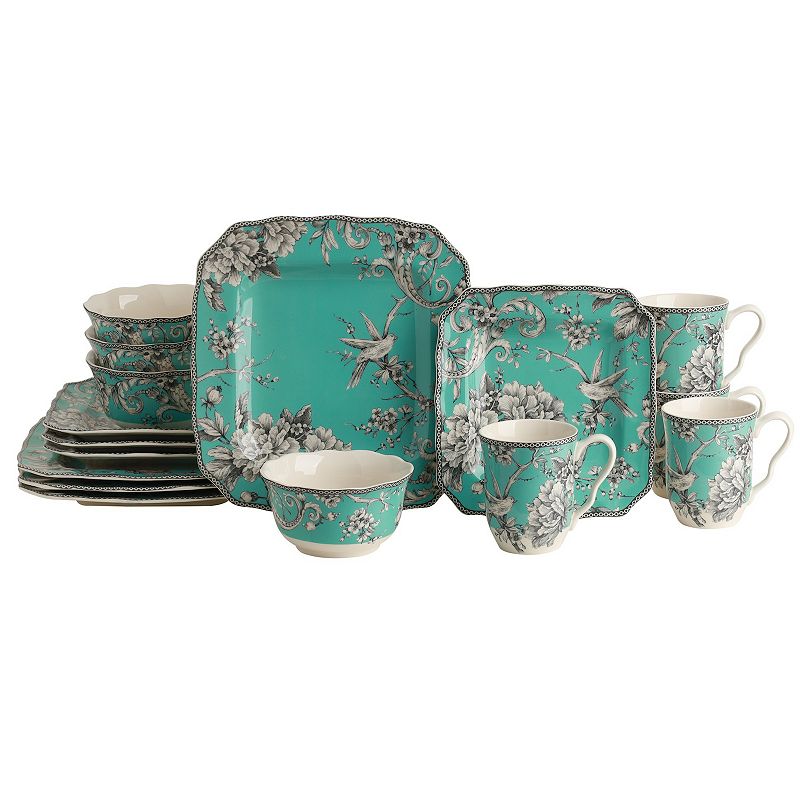 222 Fifth Adelaide Turquoise 16-pc. Square Dinnerware SetDelight your dinner guests when you set the table with this elegant 222 Fifth Adelaide Turquoise 16-pc. square dinnerware set. Delight your dinner guests when you set the table with this elegant 222 Fifth Adelaide Turquoise 16-pc. square dinnerware set. Made from chip-resistant porcelain WHAT'S INCLUDED Four 10.6-in. d222 Fifth