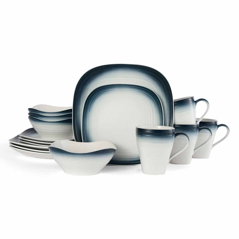 Mikasa Swirl Square 16-pc. Dinnerware Set, BlueImpress your dinner guests when you set the table with this Mikasa Swirl dinnerware, with service for four. Impress your dinner guests when you set the table with this Mikasa Swirl dinnerware, with service for four. Swirl dinnerware and serveware features clean lines with matte and gloss finishes for a bold, sophisticaMikasa