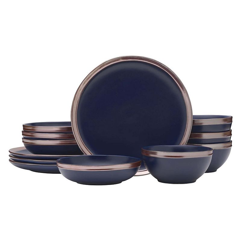 Mikasa Miller Blue 12-Piece Stoneware Dinnerware Set, Multi NoneTake your dining room place setting up a notch with this Mikasa Miller Blue 12-Piece Stoneware Dinnerware Set. Take your dining room place setting up a notch with this Mikasa Miller Blue 12-Piece Stoneware Dinnerware Set. FEATURES Vibrant design Blue reactive glaze with a rose gold finish bandingWHAT'S INCLUDED 4 dinneMikasa