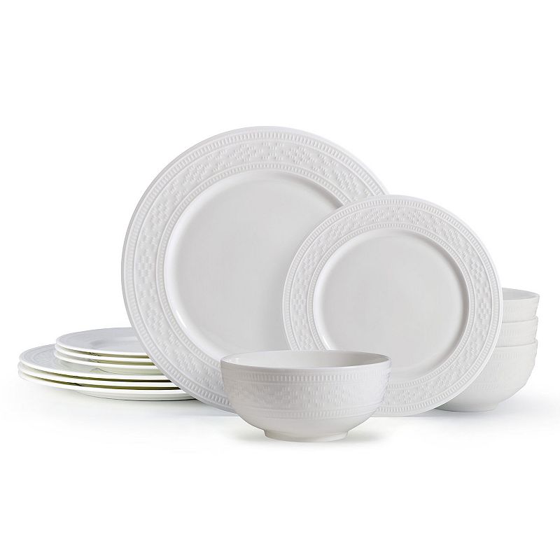 Mikasa Haven Bone China 12 pc Dinnerware Set, WhiteSet a table with eye-catching appeal with this Mikasa Haven 12 pc dinnerware set. Set a table with eye-catching appeal with this Mikasa Haven 12 pc dinnerware set. FEATURES Features embossed details with a distinct raised edge Crisp design creates a contemporary look Bone China is chip-resistant and durableWHAT'S INCLUMikasa