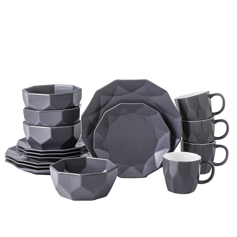 Stone + Lain Jamie 16-Piece Dinnerware Set, GrayThis Stone + Lain Jamie 16-Piece Dinnerware Set is sure to complement your modern dining room decor. This Stone + Lain Jamie 16-Piece Dinnerware Set is sure to complement your modern dining room decor. FEATURES Faceted, geometric style Durable designWHAT'S INCLUDED 4 Dinner Plates, 4 Salad Plates, 4 Bowls, 4 MugsCONSTRStone + Lain