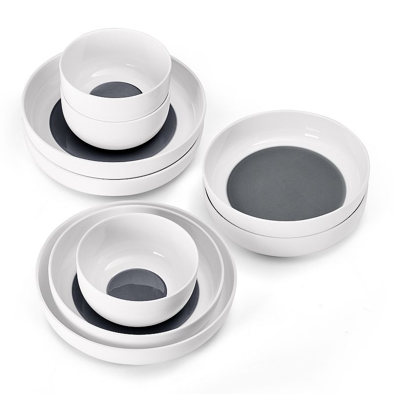 Mikasa Austyn Grey 9-Piece Dinnerware Bowl Set, GrayDefy expectations with this bold and contemporary Austyn Grey Set of 9 Bowls by Mikasa. FEATURES DEFIES EXPECTATIONS: bold and contemporary, these bright white Austyn dining bowls feature a modern, walled design and a surprise color splash of deep grey on the interior bottoms. VERSATILE: the basic white exteriors makeMikasa