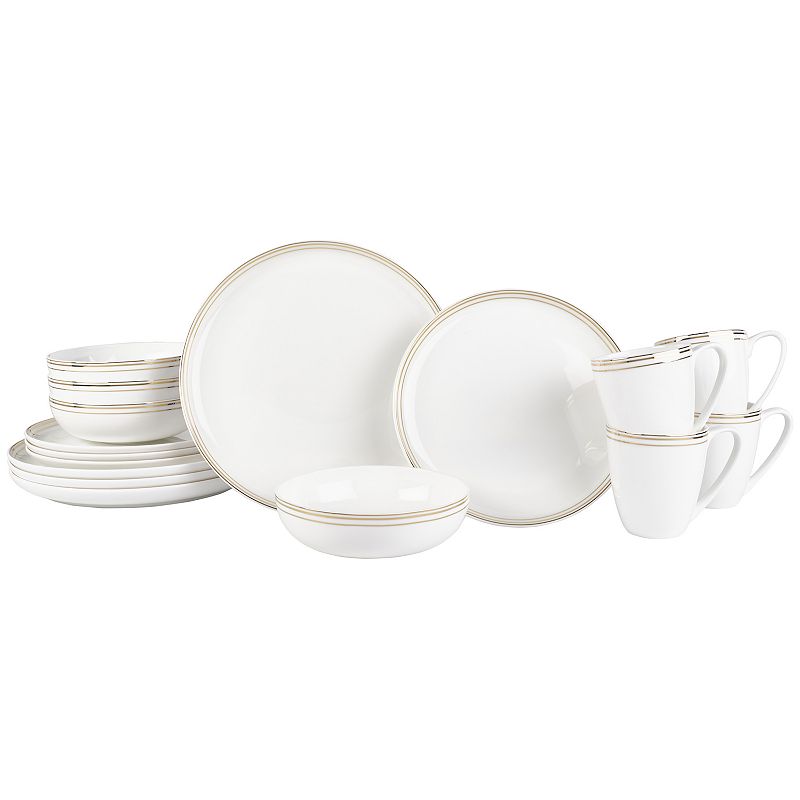 Fitz & Floyd 16-Piece Nevaeh White Coupe Gold Bands Dinnerware SetWith this Fitz & Floyd 16-Piece Nevaeh White Coupe Gold Bands Dinnerware Set setting the table or hosting a dinner party is a breeze. With this Fitz & Floyd 16-Piece Nevaeh White Coupe Gold Bands Dinnerware Set setting the table or hosting a dinner party is a breeze. FEATURES Stunning Nevaeh White Gold Bands DinnerwareFitz & Floyd