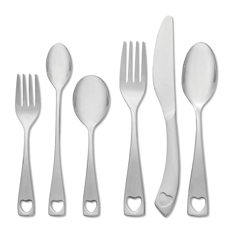Oneida Little Love 18/10 Stainless Steel 6-pc. Progress Flatware Set, SilverThe charming heart design offers a loving touch to this Oneida Little Love flatware set. Mixture of pieces is designed to grow with your child. Durable 18/10 stainless steel construction ensures quality. What's Included: Baby fork Baby spoon Feeder spoon Child's fork Child's knife Child's spoon Stainless steel DishwashOneida