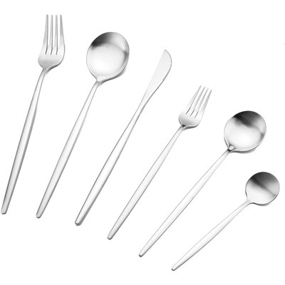 Naseer 36 Piece 18/10 Stainless Steel Flatware Set Service for 6Superior design and smooth and satin-finished surface make the flatware always shine, simple classic modern design would match well with your existing stainless steel silverware and elevate everyday meals into a fine dining experience. Made of premium stainless steel food-grade stainless steel this set is sturdy and duLatitude Run