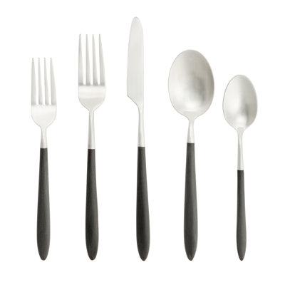 Fortessa Velo 18/10 Stainless Steel 20 Piece Flatware Set, Service for 4, Black/Brushed SilverTastefully decorated in the traditional style, this pattern reflects the elegance of handcrafted tableware from a bygone age. Our 18/10 flatware, the highest quality stainless steel available for flatware, includes traditional patterns and fashion-forward patterns. Its designs are visually elegant with a heft and balanFortessa