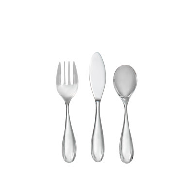 Nambe Kibo Toddler Flatware SetA thoughtful gift for your little one whos ready to join you at the dining table, the three-piece Kibo Toddler Flatware Set fits perfectly in tiny hands. The set includes a fork, spoon, and knife for your little high-chair graduate and comes in a felt carrying case with an engravable metal tag. NambNamb