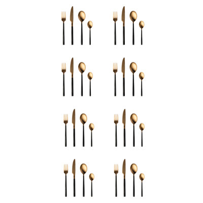 BergHOFF Gem 32Pc Gold Stainless Steel Flatware SetWhether you want to give your dinner table a little touch of glamour or youre looking for the perfect gift to offer at a wedding or a housewarming, you cant go wrong with this stylish black and gold-plated flatware set. The knife, fork, spoon, and dessert spoon are each made high-quality dishwasher safe so after youveBergHOFF
