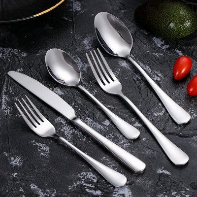 Bungalow Rose Jacynda Flatware Set - Service for 4Upgrade your dining experience with our 20 pc stainless steel flatware set. The set includes 4 pieces each of dinner spoons, dessert spoons, dinner forks, dessert forks, and knives. Crafted with high-quality stainless steel, this set is durable and perfect for everyday use or special occasions. Elevate your table settiBungalow Rose