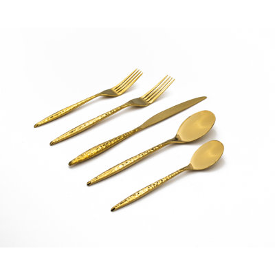 Avellino 20 Piece 18/10 Stainless Steel Flatware Set, Service for 4Forged with a unique texture that fits well with any decor. Its stainless steel core makes it sturdy enough for everyday use and each place setting ensures that you have all the right utensils at hand, whatever the occasion. Godinger Silver Art Co Color: Shiny GoldGodinger Silver Art Co