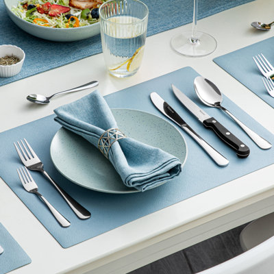 Ebern Designs Nikeria Stainless Steel Flatware Set - Service for 6The Ebern Designs 24 Piece Flatware Set is the perfect way to set the table for your modern family. This elegant set is made of high-quality stainless steel, so it's durable and easy to care for. The simple, classic design will never go out of style, both stylish and sophisticated, and it will complement any dining rooEbern Designs