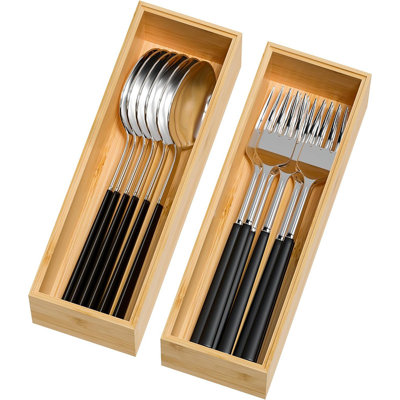 Kitchen Drawer Organizer Bins, Stackable ,Silverware,Utensils,Cutlery,Flatware,Black2 PCS Kitchen Drawer Organizer - Our kitchen drawer organizers for small or large utensils, silverware, cutlery and flatware is an absolute necessity for kitchen. This silverware organizer set offers ample space for storing most cooking utensils in the kitchen, such as spatulas, ladles, tongs, and whisks, also an greatHokku Designs