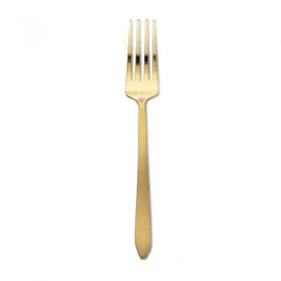 Svanur FlatwareElevate any meal or dining occasion with this stylish classic gold handle fork. Crafted out of stainless steel with a golden PVD vapor finish for consistency and durability, the flat, matte color of this fork's handle is complemented by the shiny finish on its head and tines for an elegant way to enjoy almost any meal.Mercer41