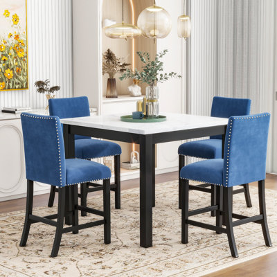 Bethal 5-Piece Dining Table Set, Modern Bar Table Set With 4 Bar Stools, Counter Height Table Chair Set, Home Kitchen Breakfast Table And Chairs Set IThis 5-piece dining set is ideal for space-conscious kitchens and dining rooms. The 35.6'' tall counter-height table and four matching stools are made from engineered wood. Their black, powder-coated steel frames add an industrial touch. This slender table has a 43.3'' x 23.6'' rectangular top that can be placed againsWade Logan