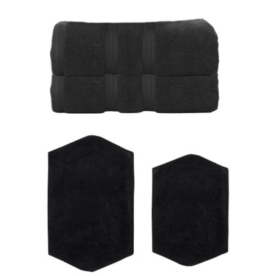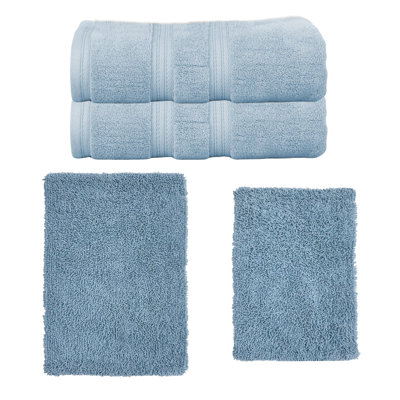 Waterford Collection 100% Soft Cotton 2 Pc Bath Towel Set & 2 Pc Bath Rug Set, (Set of 4)Transform your bathroom into a spa-like sanctuary with the Home Weavers 100% Soft Cotton Super Absorbent Bath Towels & Rugs Combo. Made from luxurious zero-twist cotton, these towels and rugs offer unmatched softness and absorbency while being gentle on the skin. The set includes a range of sizes, from plush bath towelEss Ess Exports
