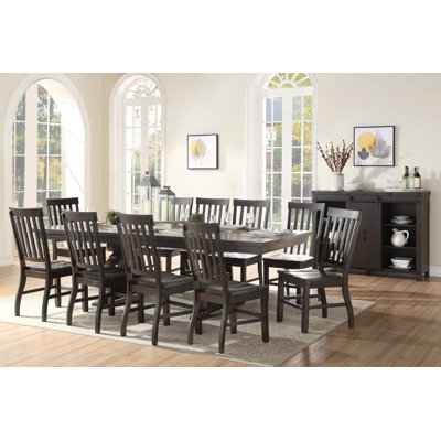 11ps Kitchen Furniture Set Include 1 Dining Table And10 Chairs, Formal Dining Table Set, Set For 10 Persons, Rustic WalnutCombining classic and contemporary elements, the bold curves of the dining table provide both an elegant contrast and a unique look to any dining area. The beautiful rectangular trestle table features a wood base with decorative scrolled motifs in a rustic walnut finish. DAEDAE