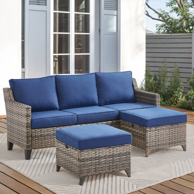 Ebern Designs 3 Pieces Outdoor Patio Furniture Set, 3-Seater Sofa Set With Ottomans, All-Weather PE Rattan Outdoor Sofa Set For Poolside, Garden, DeckDecorate your outdoor space with this stylish and elegant conversation set! It can be placed in gardens, courtyards, and deck to embellish your outdoor space, and its exquisite and atmospheric appearance will be eye-catching. The ergonomically designed armrests and backrest provide strong support for your body, and theEbern Designs