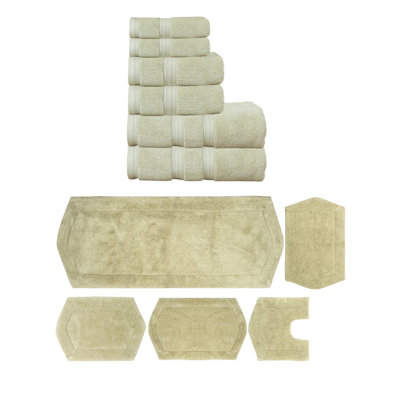 Waterford Collection 100% Soft Cotton 6 Pc Towel Set & 5 Pc Bath Rug Set, (Set of 11)Transform your bathroom into a spa-like sanctuary with the Home Weavers 100% Soft Cotton Super Absorbent Bath Towels & Rugs Combo. Made from luxurious zero-twist cotton, these towels and rugs offer unmatched softness and absorbency while being gentle on the skin. The set includes a range of sizes, from plush bath towelEss Ess Exports