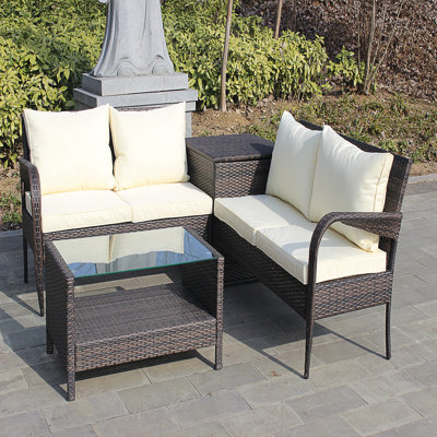 4 Piece Wicker Rattan Patio Sofa Set, Outdoor Conversation Set, Garden Sofa Couch Set with Cushions and Storage BoxOur outdoor furniture has a sturdy anti rust steel frame. We use high quality pe rattan wicker, ensuring that it can withstand the test of time and high temperature, and is very suitable for any indoor and outdoor use Red Barrel StudioRed Barrel Studio