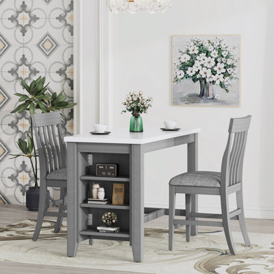 Keishawn 3-piece Counter Height Dining Set with Built-in Storage Shelves, Kitchen Table Set, Dining Room Set3-piece Counter Height Dining Table Set with Built-in Storage Shelves, One Faux Marble Top Dining Table and 2 counter chairs with footrest,Grey Red Barrel StudioRed Barrel Studio