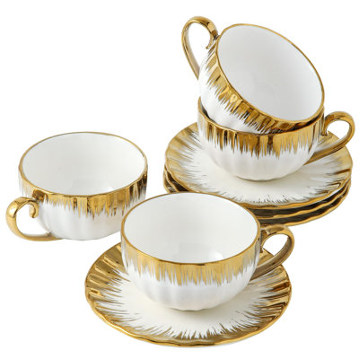 7 Oz Cappuccino Cups With Saucers, Ceramic Double Espresso Cups Set, Tea Cups Set Of 4, Turkish Coffee Cup Set With Gold Trim For Latte, Mocha, WhiteOur beautiful cup and saucer set comes with 4 cups (6 oz/180ml), 4 saucers (5.6in), which can bring an elegant afternoon tea time with your family and friends. These cups and are in the right size and thickness to keep the coffee warm. It's ideal for those who love coffee.This espresso cup sets are made of high-qualityRainbow Home