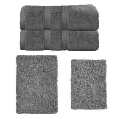 Fantasia Collection 100% Soft Cotton 2 Pc Bath Towel Set & 2 Pc Bath Rug Set, (Set of 4)Transform your bathroom into a spa-like sanctuary with the Home Weavers 100% Soft Cotton Super Absorbent Bath Towels & Rugs Combo. Made from luxurious zero-twist cotton, these towels and rugs offer unmatched softness and absorbency while being gentle on the skin. The set includes a range of sizes, from plush bath towelEss Ess Exports