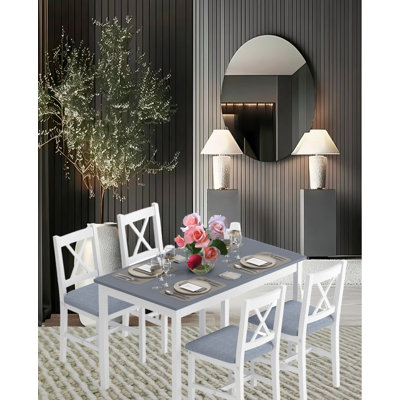 Dining Table Set For 4, Modern Kitchen Dining Table And Chairs 4 Piece Set, Space Saving 5 Piece Dining Table Set, Modern Style Adaptable For Small SpSoges Dining Table Set for 4, Modern Kitchen Dining Table and Chairs 4 Piece Set, Space Saving 5 Piece Dining Table Set, Contemporary Style, Suitable for Small Spaces, Apartments Gracie Oaks Table Top Color: Gray, Chair Color: GrayGracie Oaks